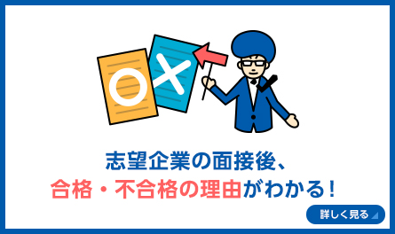 通常の選考では、志望企業の合格・不合格理由を教えてもらえないことがほとんどですが、本サービスを利用すれば、理由を知ることができます。