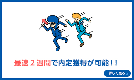 「doda新卒エージェント」限定の「特別枠」を利用すれば、通常より選考スピードを早めることができます。「特別枠」での応募は選考日程や選考回数に独自のフローが用意されているので、最速2週間で内定を獲得することも可能になります。