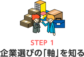 STEP1では、就活生が応募企業を選ぶときに検討する9つの軸をご紹介します。